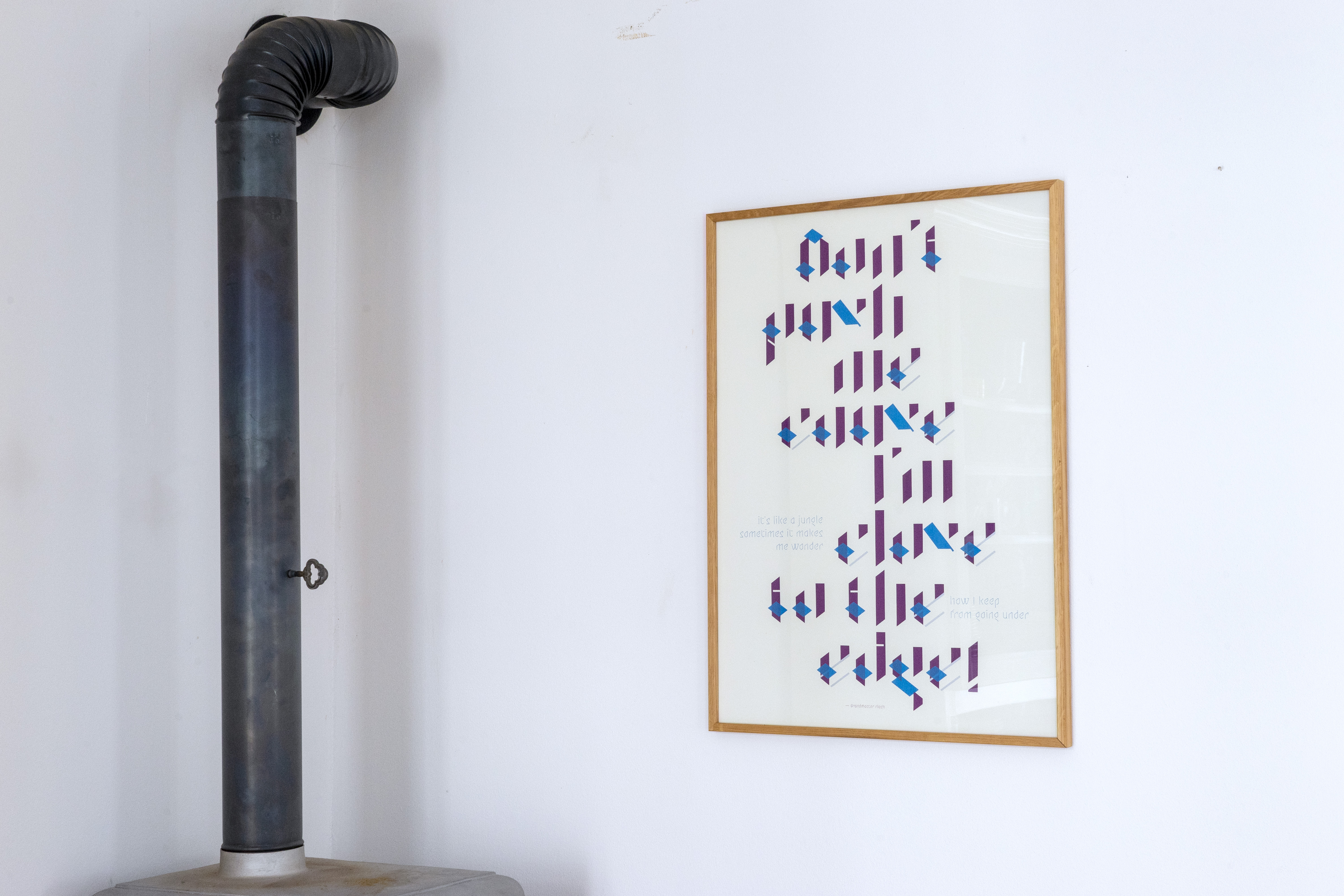 Screen printing in purple, blue and silver on cardboard